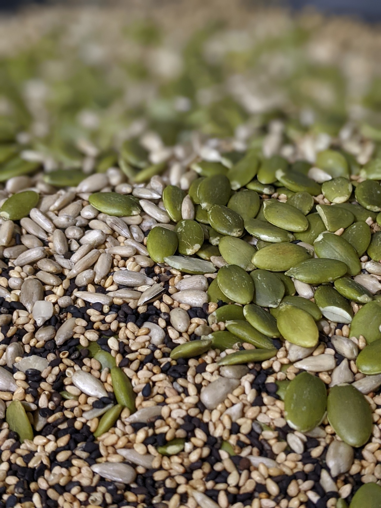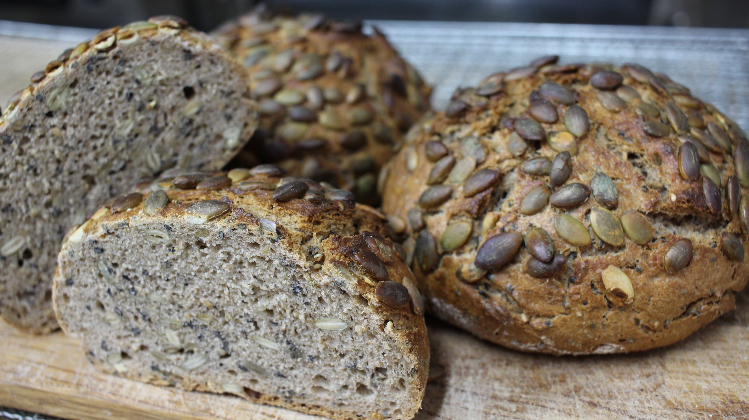 味わい深い雑穀パン。白ごま、黒ごま、ヒマワリの種、かぼちゃの種と4種類入りです。